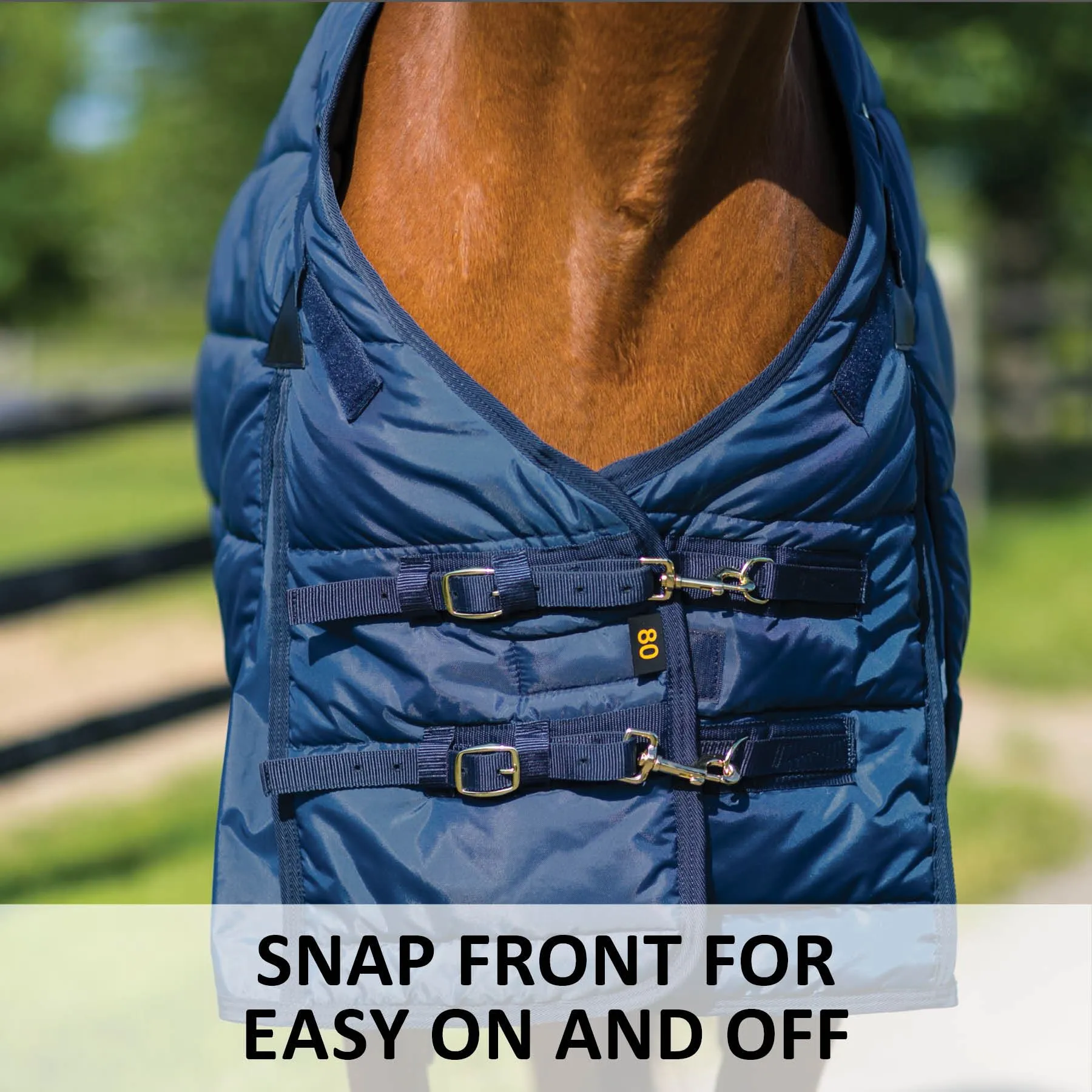 This medium weight stable blanket allows your horse to stay comfortable in cold weather. Breathable Dura-Nylon® 420 denier nylon outer keeps your horse from overheating and the “Original” Adjusta-Fit® System is designed to adjust the size of the neck up to 2″, so you get a custom fit no matter the shape of your horse. Is not made to fit a Neck Cover.