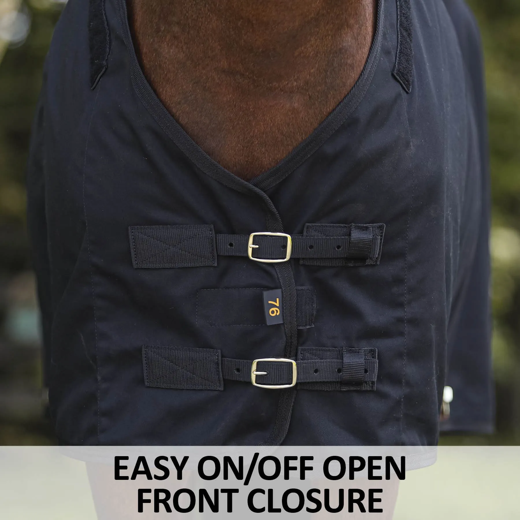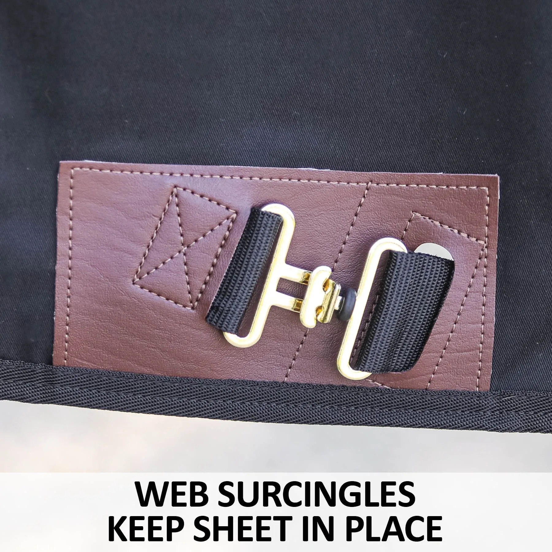 This stable sheet features the “Original” Adjusta-Fit® System, which allows you to customize the fit. Poly-cotton sheets are durable and absorbent with generous depth for full coverage. This sheet functions as a liner in transitional weather as well as a show cover when on the road. Made of 65% cotton and 35% polyester these sheets are cool in the summer and breathable.