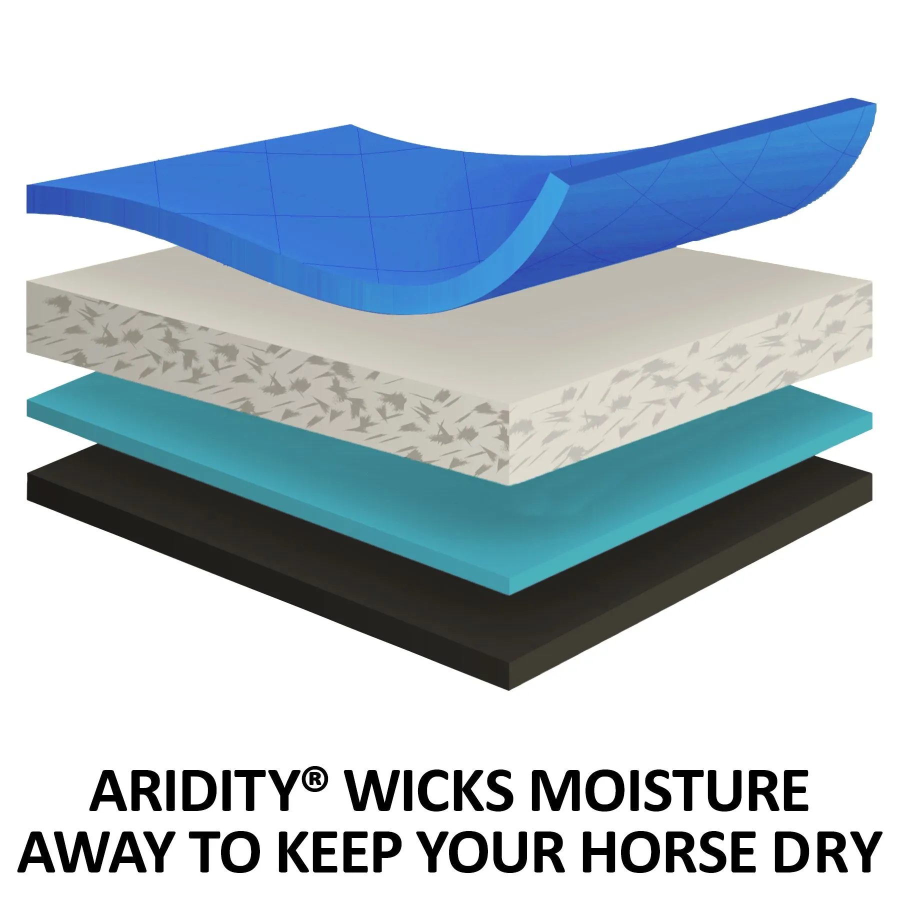 This heavy-duty heavyweight stable blanket allows your horse to stay comfortable and warm in the stable. Aridity™ Bamboo Charcoal inner layer wicks moisture away from the horse, keeping them more comfortable during temperature changes. Is static reducing and antibacterial. Breathability keeps your horse from overheating and the featuring “Original” Adjusta-Fit® System is designed to adjust the size of the neck up to 2″, so you get a custom fit no matter the shape of your horse.
