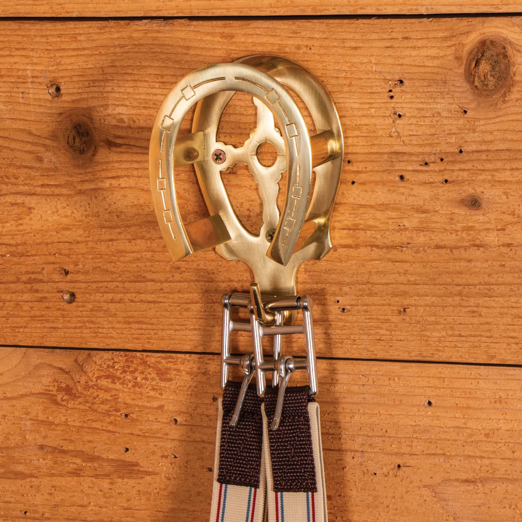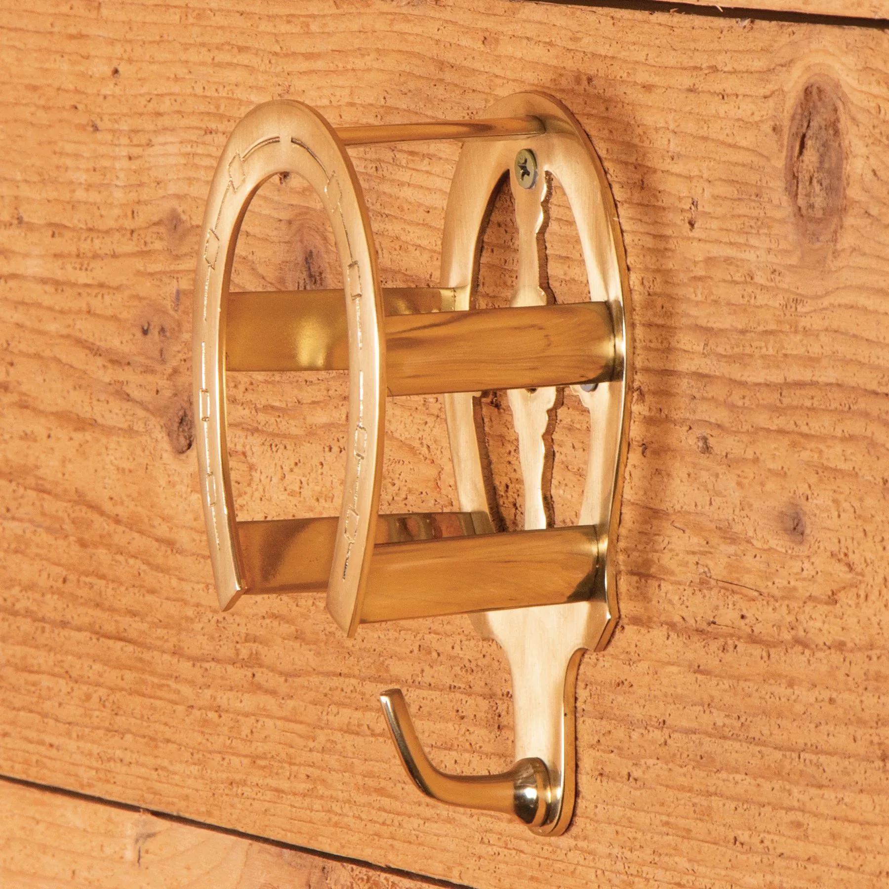 The classy brass bridle rack is a great addition to stall fronts and for organizing tack rooms. Made of solid brass in an attractive double horseshoe design.