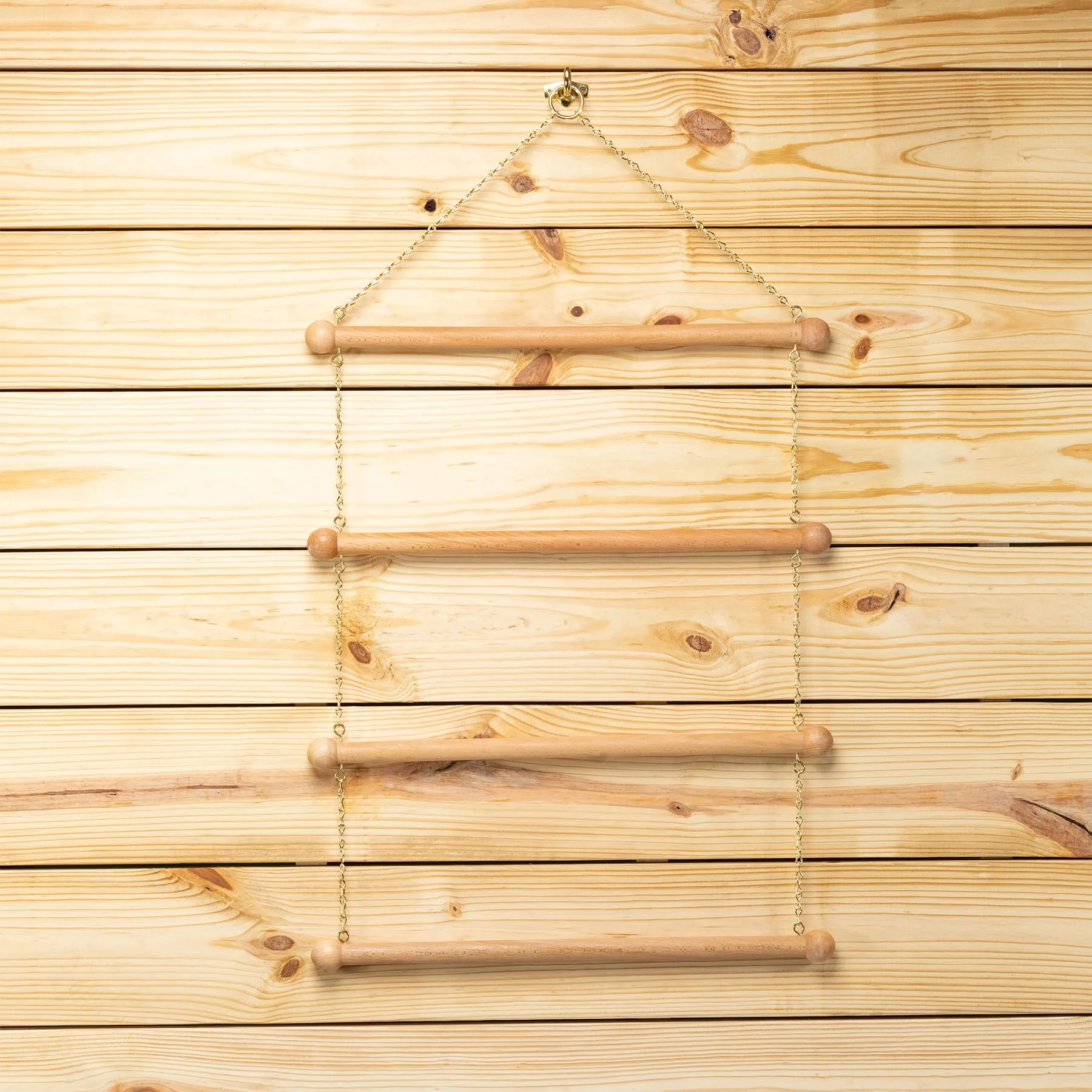 Portable wood and chain drying rack for coolers, sheets, and blankets.