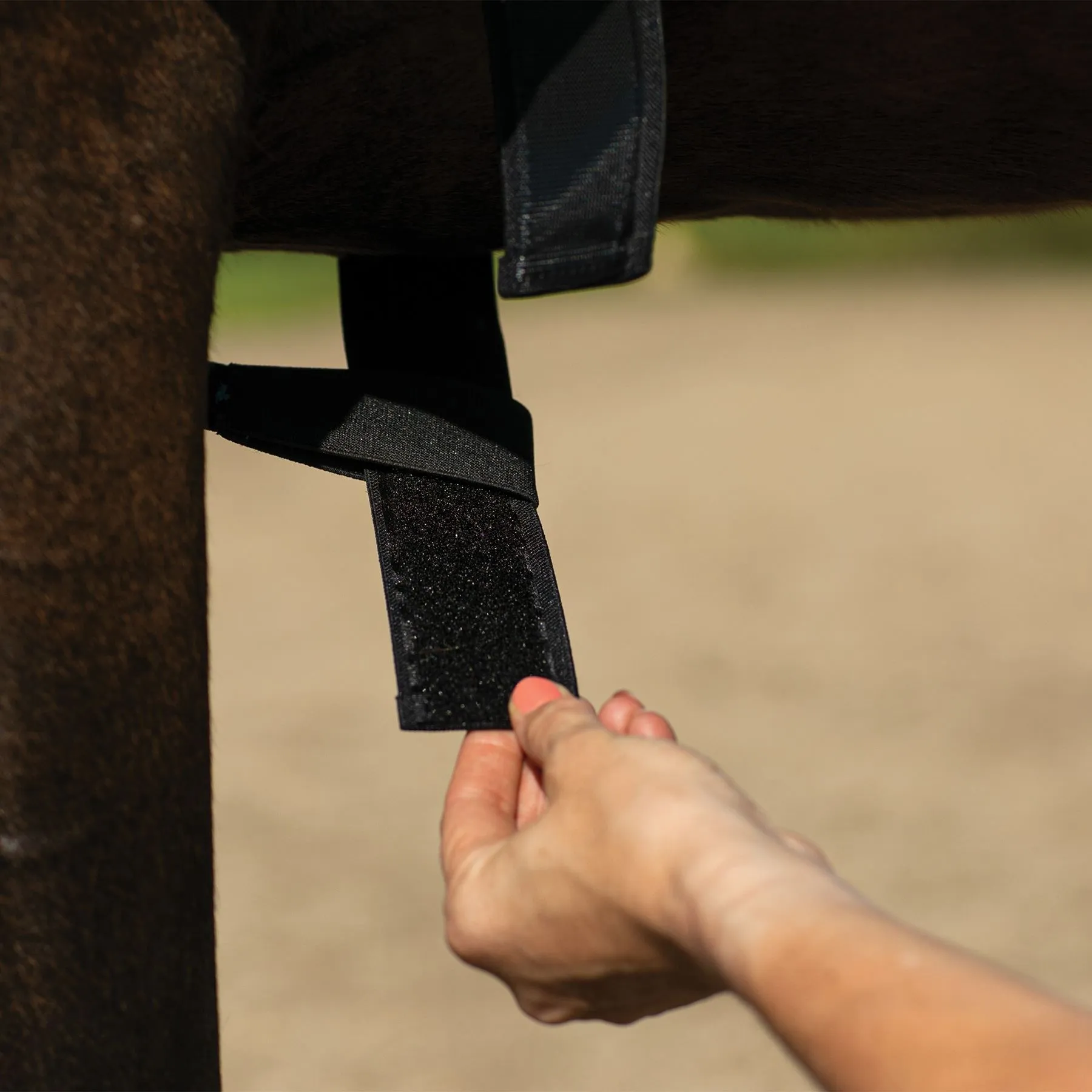 - Elastic girth with hook and loop closure
