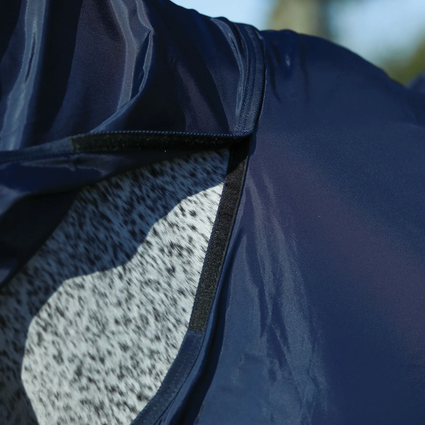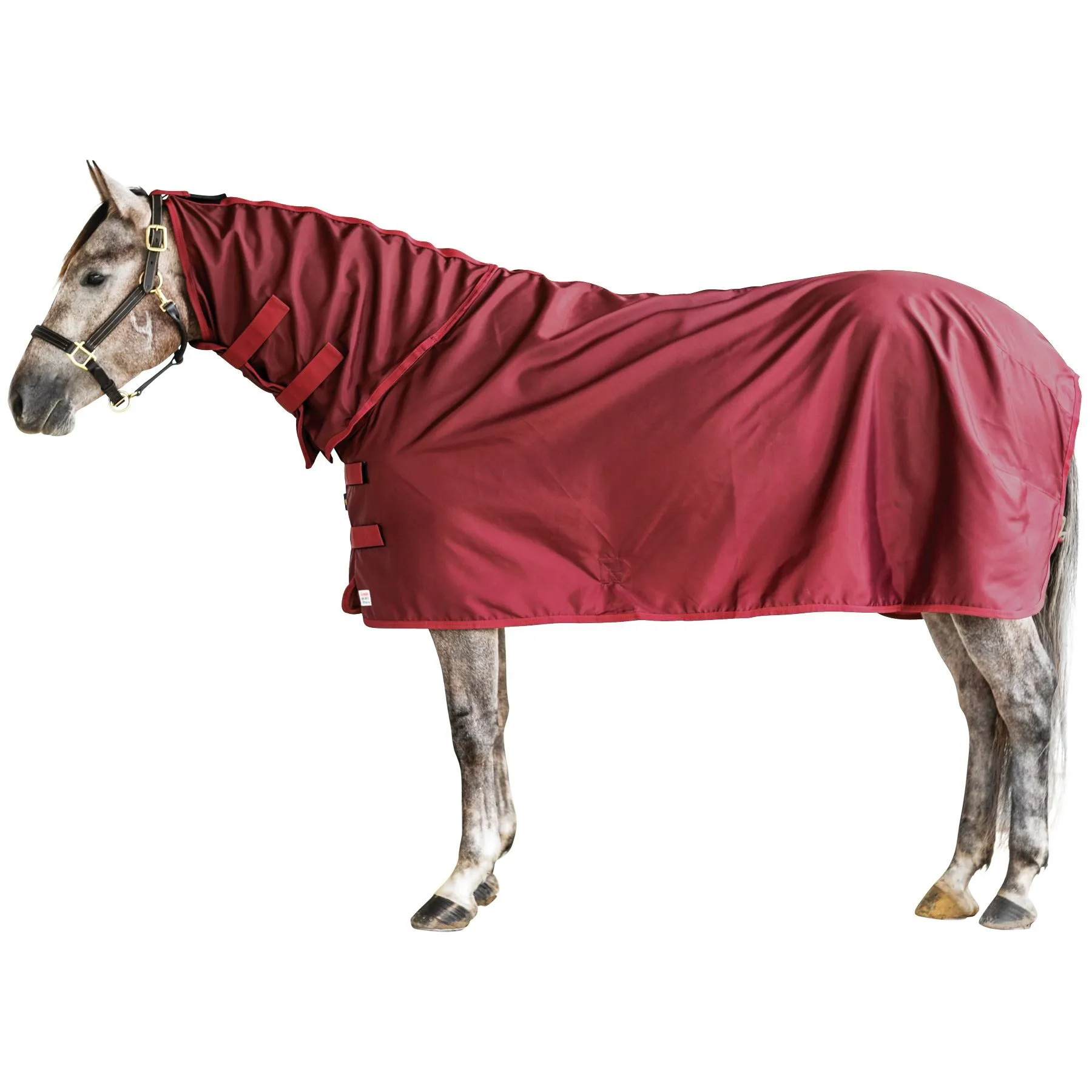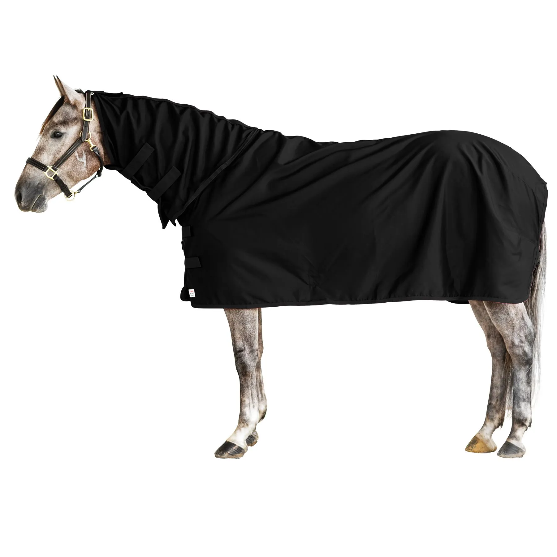 Soft, smooth 420D nylon to keep the horse’s coat clean and slick. Duo-Fit design allows the neck to be opened separately and folded back for last minute grooming while the body can stay covered up.