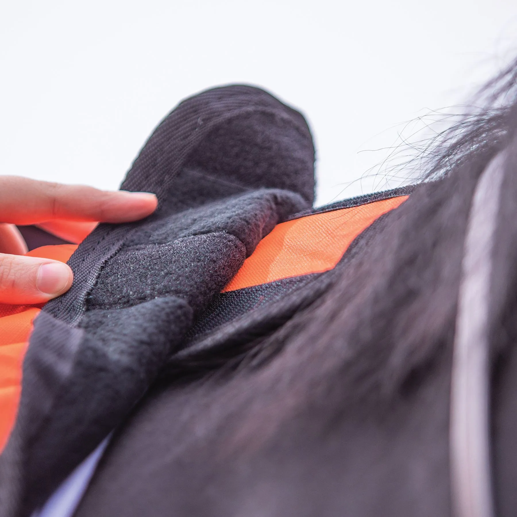 The Dura-Tech® Waterproof Quarter Sheet is a great way to protect both horse and rider from cold, wet weather. The 600-denier polyester outer shell is durable and breathable, while the polar fleece lining adds an extra layer of warmth. The hook and loop closure ensures a snug fit around the waist, and the tail cord helps to keep the sheet in place. This versatile horse quarter sheet can be used on its own or under the saddle, making it a must-have for any equestrian.