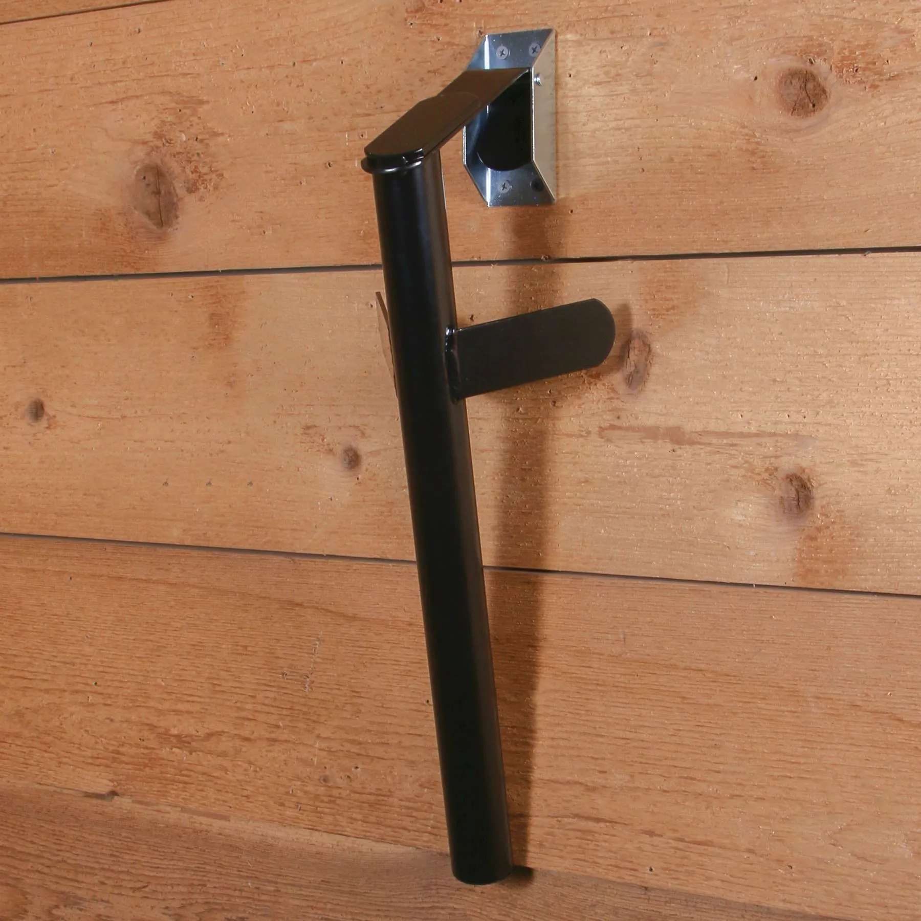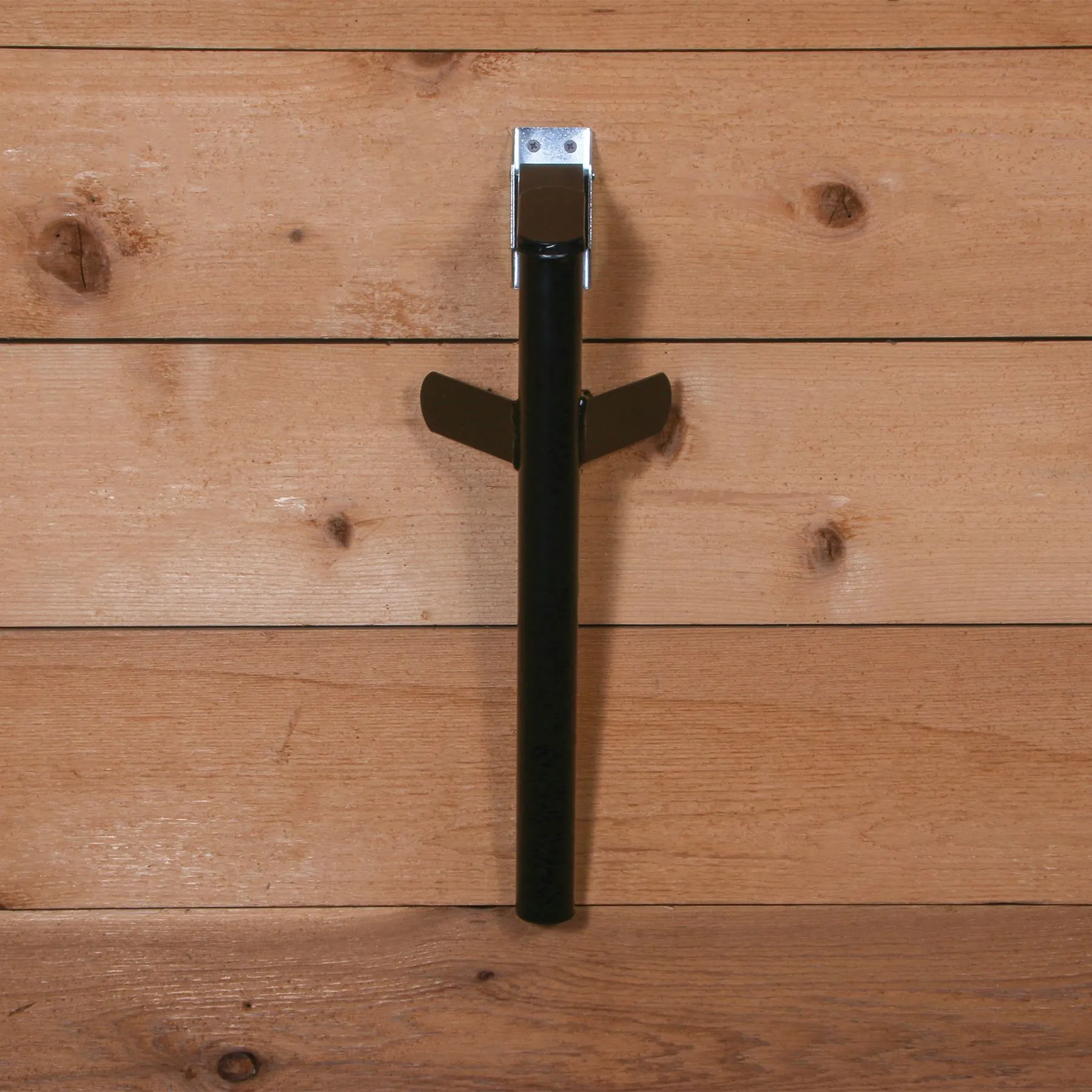 - Easily mounts on stall fronts, tack rooms or in horse trailers. Perfect for those conserving space without having the protruding arms getting in the way.