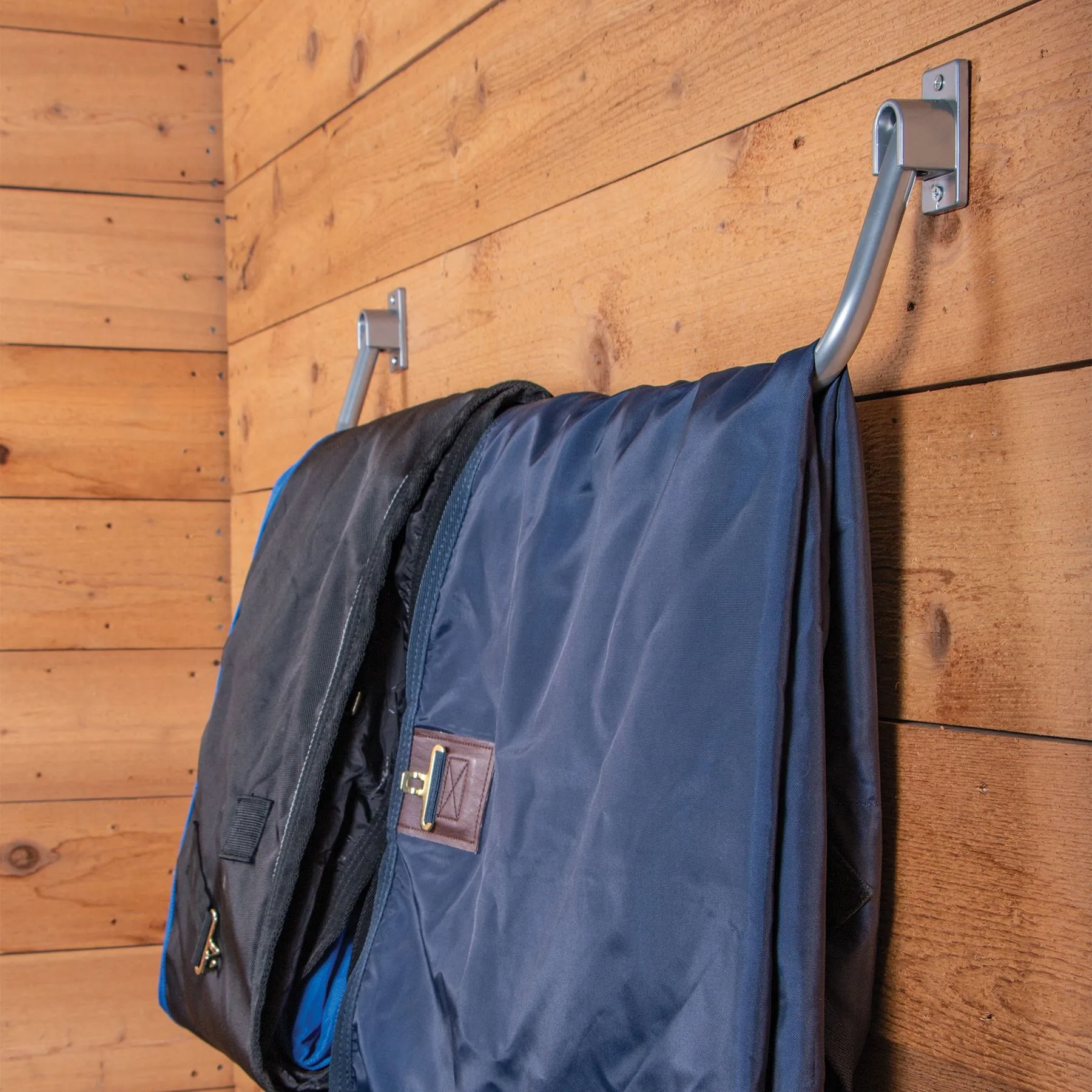 This lightweight blanket bar can be mounted to your stall as a convenient way to keep your horse’s sheets, coolers or blankets out of the way but ready to use. When not in use, it folds down to save space.