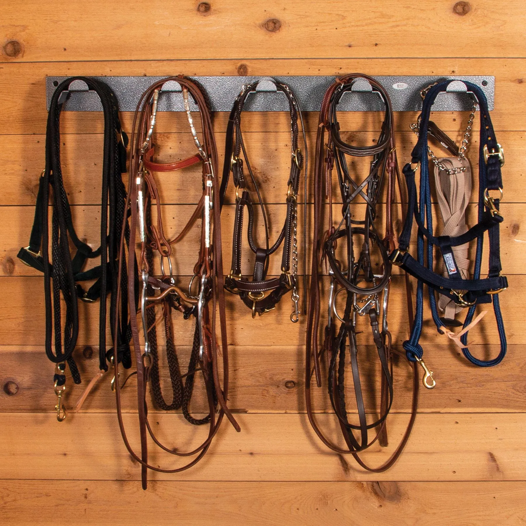 Wall space is hard to find. This Heavy duty tack rack can fit 20 bridles in a 45″ wide space. The tack hanger can fit bridles or halters and is portable or mountable. 45″ long x 6″ wide (including hanging hooks) x 4″ deep. Mountable or Portable for both at home and at show use.