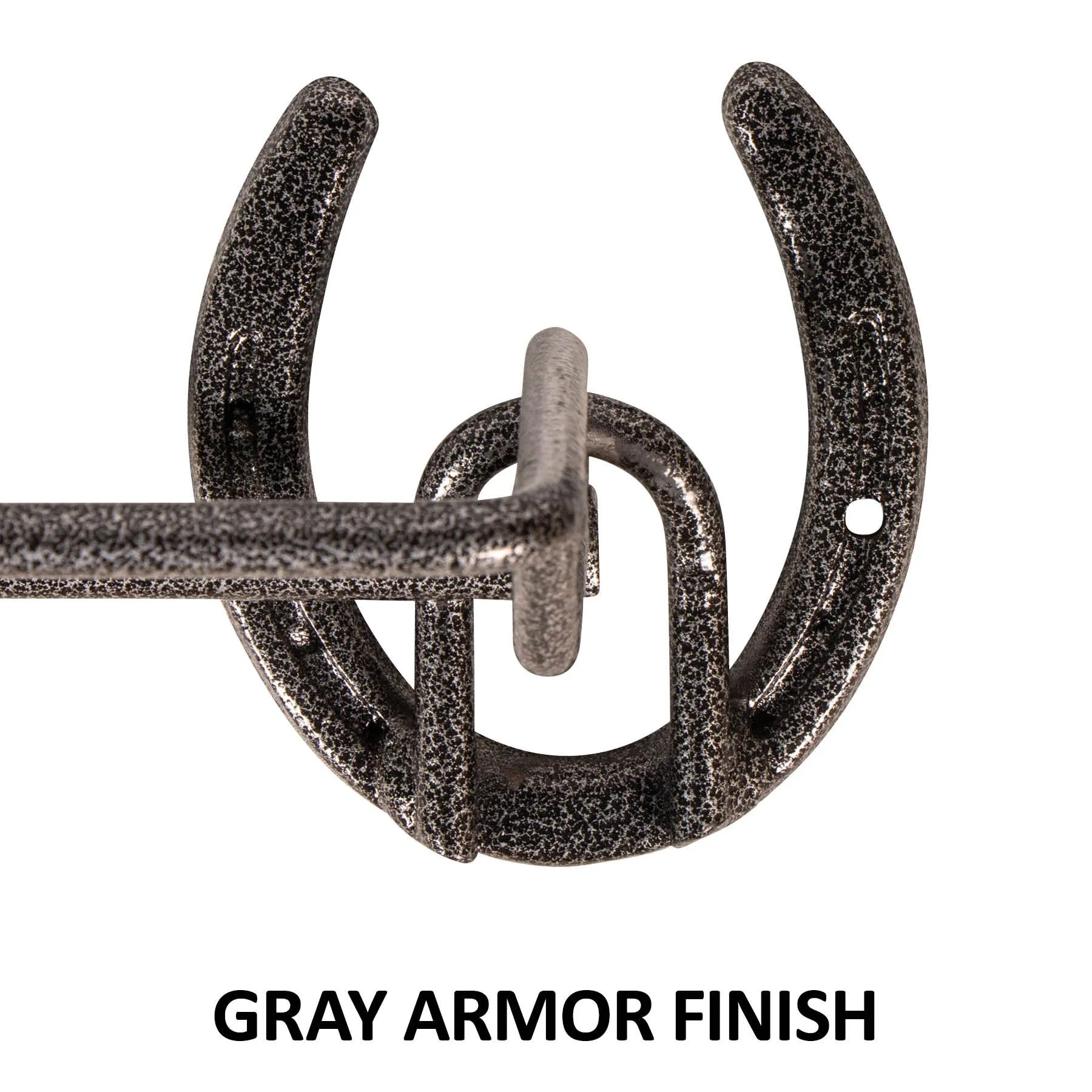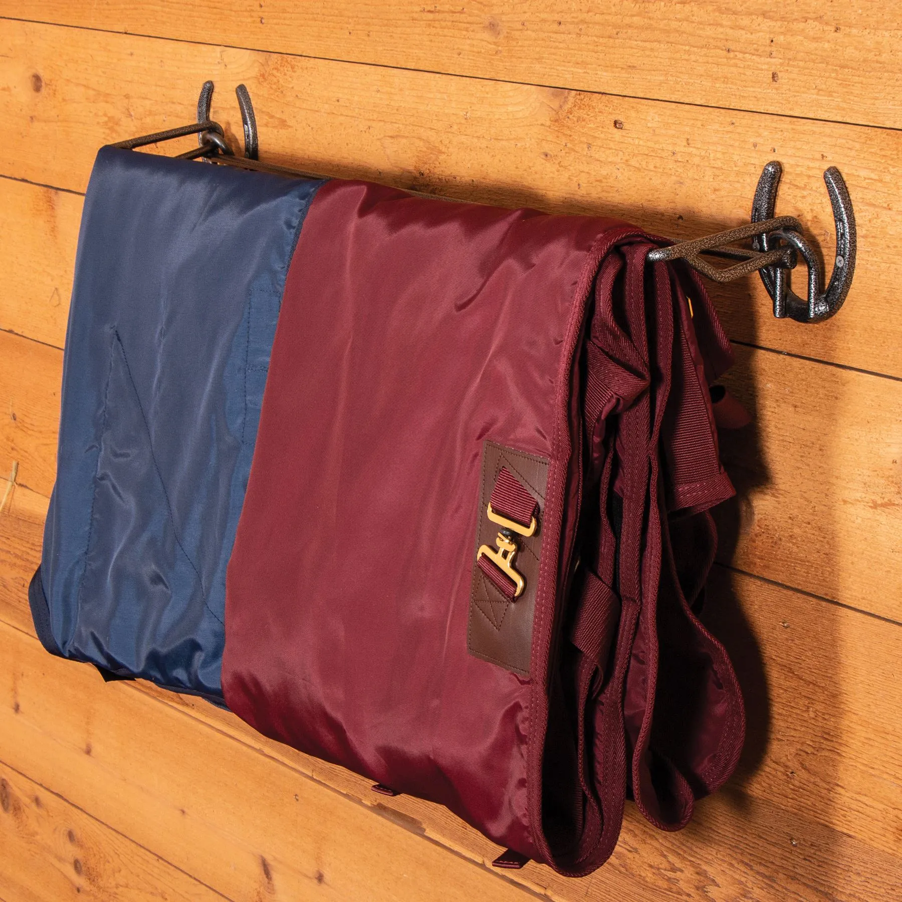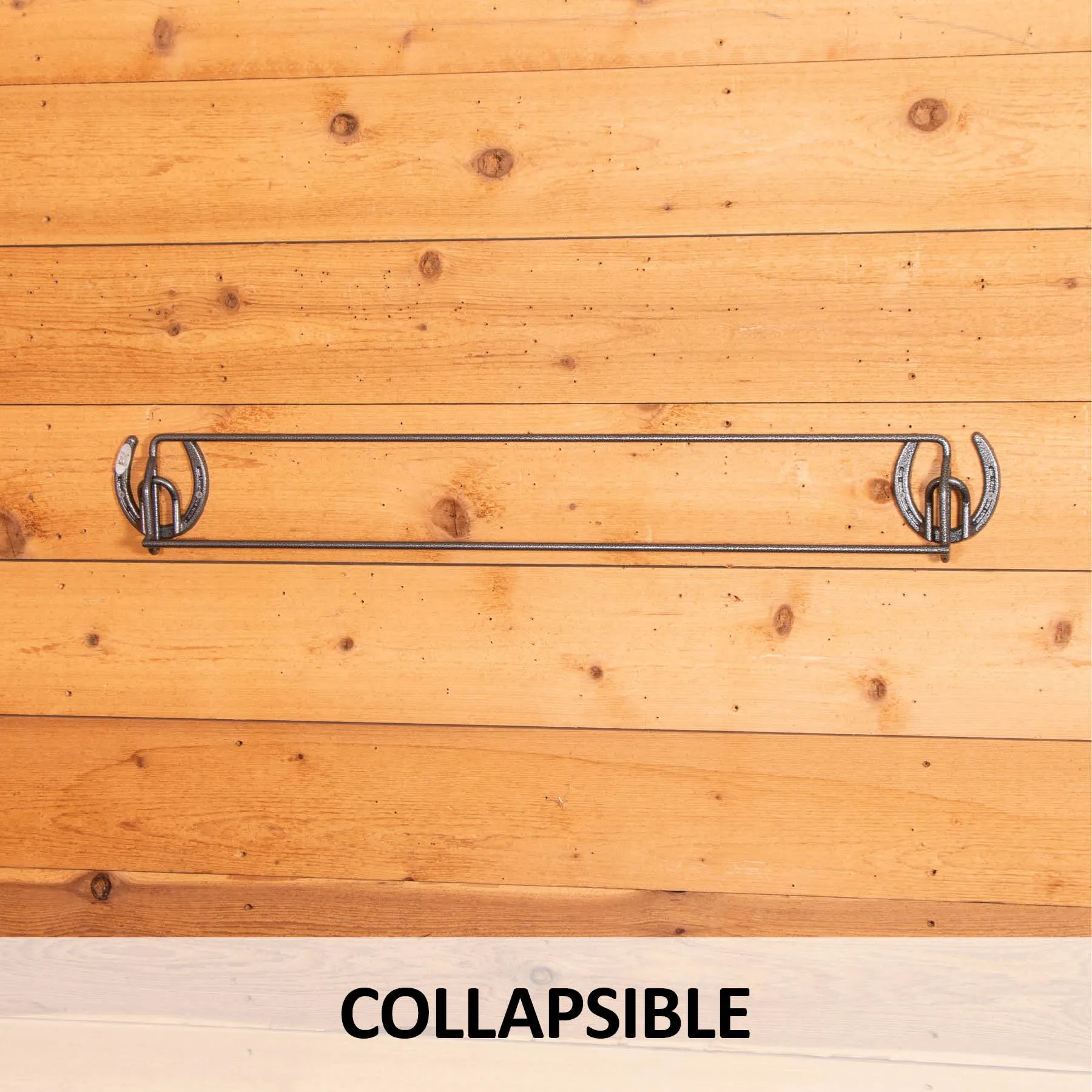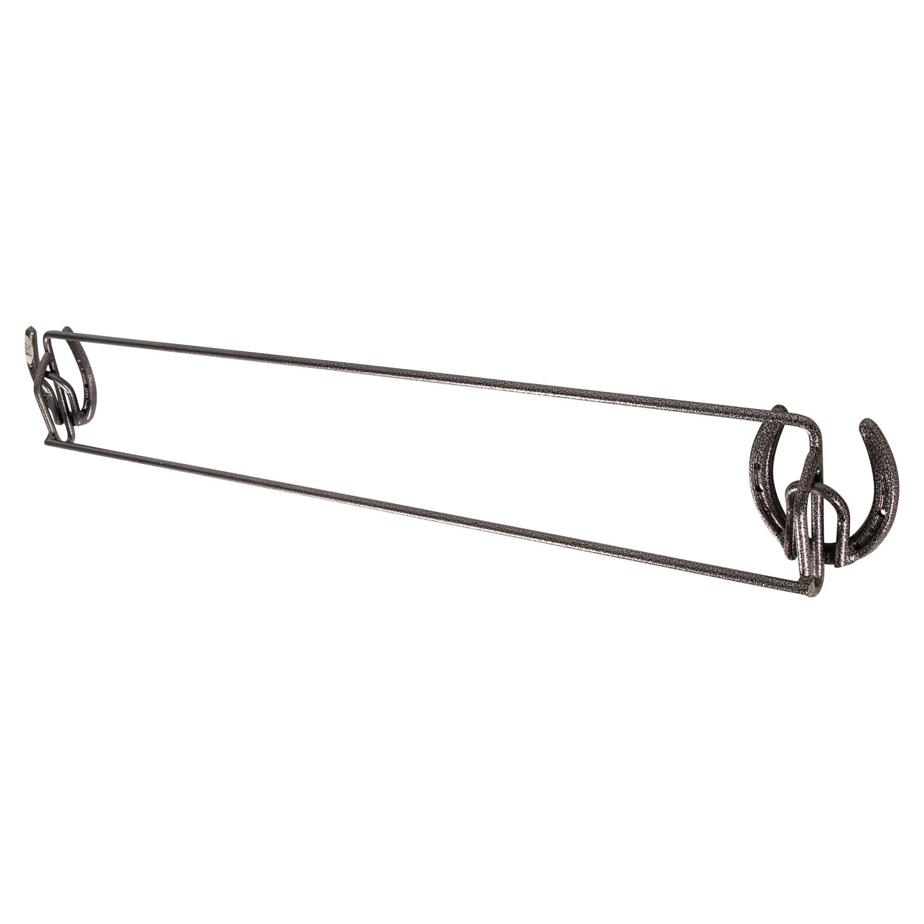 A decorative accessory to your horse’s stall front that can hold your sheets, blankets, or coolers to keep them neat and off of the floor. Horseshoe mounting brackets, measures 36″ long x 5″ tall x 5″ deep. Mounting hardware is included.