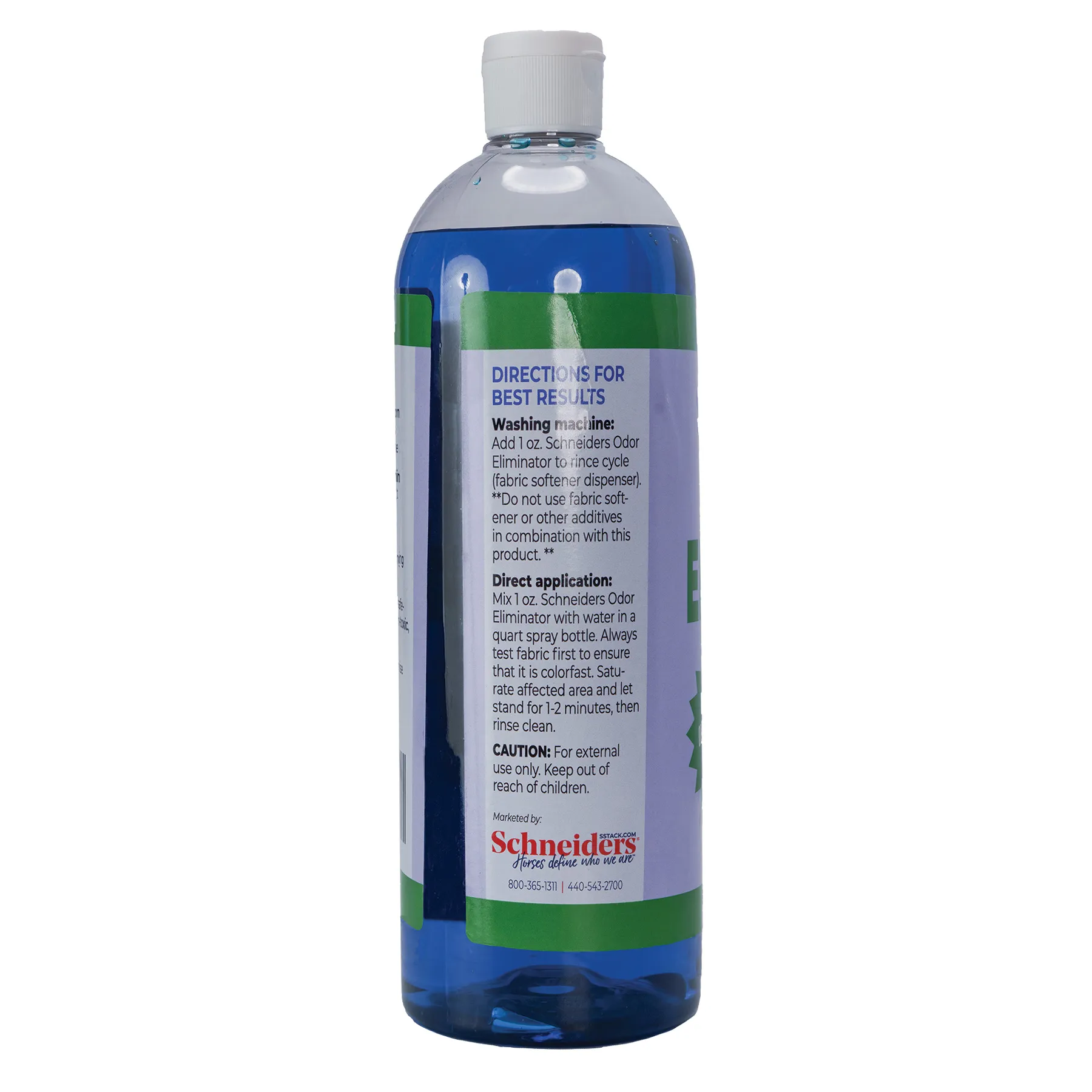 Say goodbye to stinky blankets, pads, and other pet laundry! The Schneiders® Odor Eliminator will destroy odors associated with urine, manure, mold, mildew, skunk, and anything else that your horse or dog may get into! Keep this horse blanket odor eliminator on hand for your horse laundry, freshening up blankets, saddle pads, dog beds, and more. Your nose will thank you!